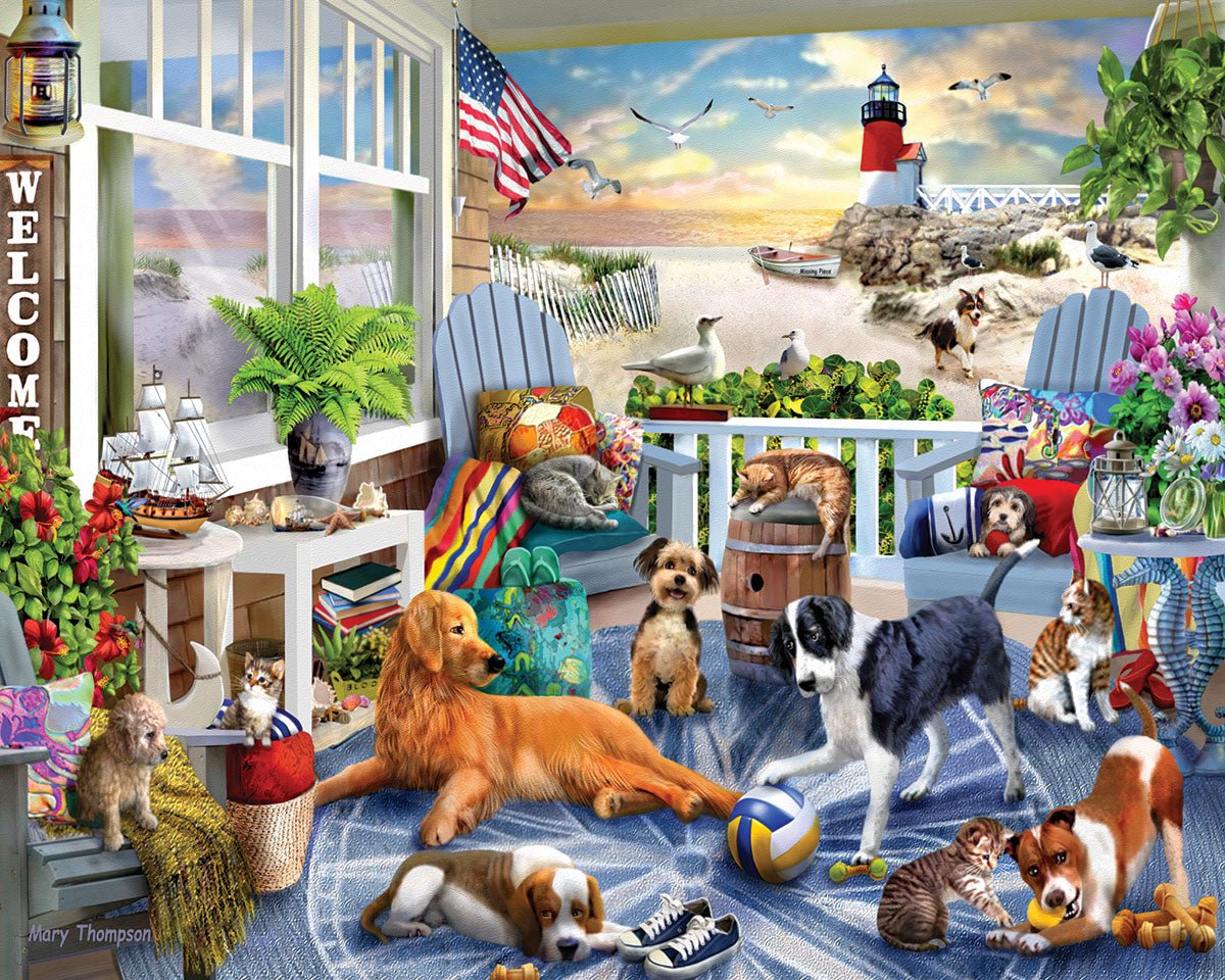 Porch Puppies (2158pz) - 1000 Piece Jigsaw Puzzle