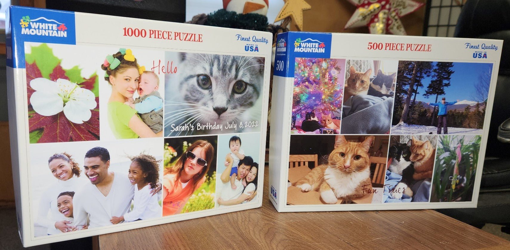 White Mountain Puzzles does not view or proof photos at any point. Please adjust your photo accordingly before finalizing your order. If you need help please call us 800-548-8009. Orders are accepted as is. Pieces are smaller than traditional WMP puzzles. All sales are final.